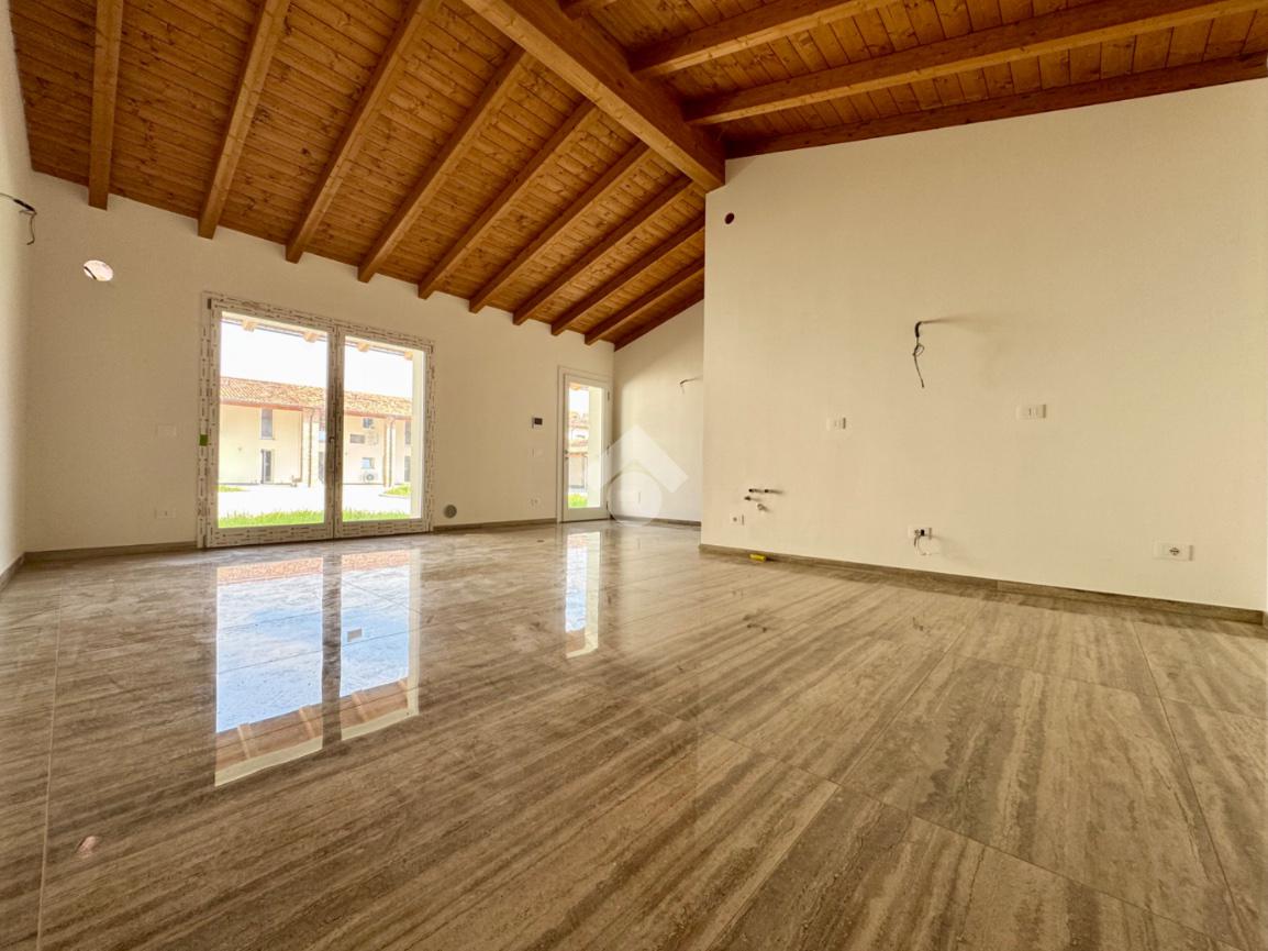 Nel comune di Montodine, proponiamo in vendita una moderna villetta di nuova costruzione all'interno di una corte. Questa abitazione, di 93 mq, si sviluppa interamente al piano terra, offrendo la comodità di una villetta tutta su un piano. La proprietà include un giardino privato, ideale per momenti di relax all'aperto. All'interno, l'ampia e luminosa zona giorno rappresenta il cuore della casa, perfetta per accogliere amici e familiari. La soluzione dispone di due camere da letto, garantendo spazio e comfort per tutta la famiglia. Il riscaldamento a pavimento assicura un ambiente accogliente durante i mesi più freddi, mentre i locali climatizzati offrono sollievo nelle giornate estive. Completa l'offerta la possibilità di aggiungere un box o un posto auto all'interno della corte, per una soluzione abitativa che unisce praticità e modernità.